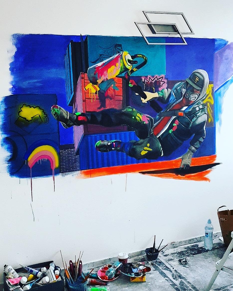 Okrem vlastných kolekcií vytváram aj umelecké diela na objednávku — často portréty alebo celopostavové kompozície jednotlivcov či skupín. Tieto diela kombinujú realizmus s estetikou pouličného umenia a zachytávajú hlbšiu podstatu zobrazovanej osoby cez vrstvy graffiti, objektov a symbolického rozprávania. Výsledkom je vizuálny príbeh, ktorý odráža nielen vzhľad, ale aj identitu, energiu a prítomnosť.